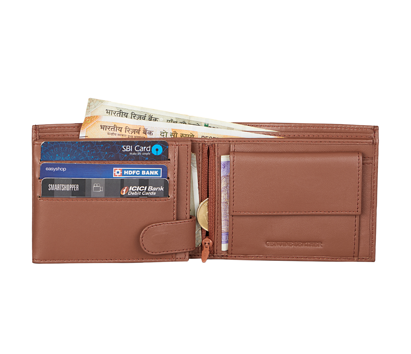 - flap coin pocket,